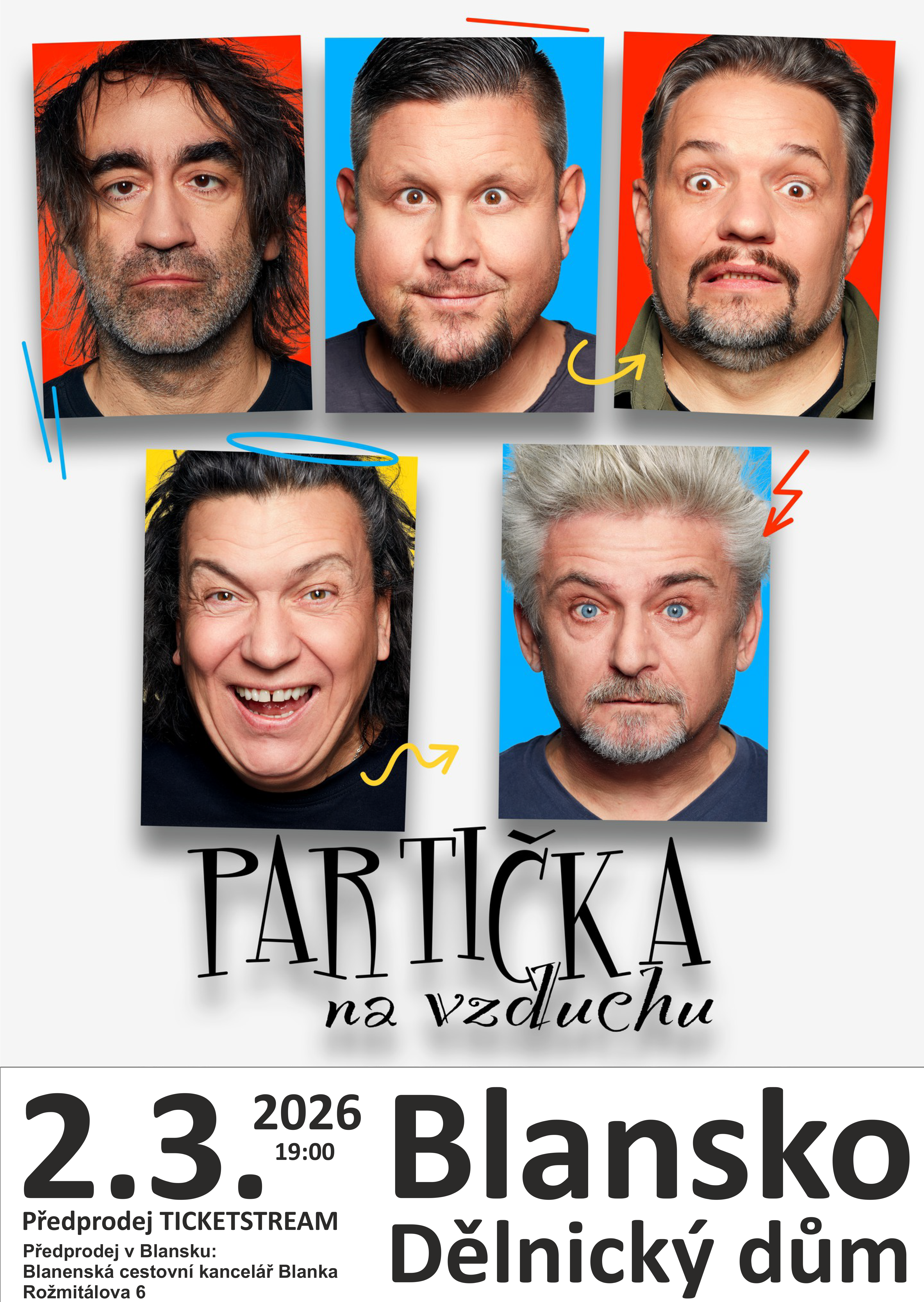 Partička – vždy připravená k hustý zábavě v podání Michala Suchánka, Richarda Genzera, Michala Novotného, Jakuba Koháka a Luďka Staňka.