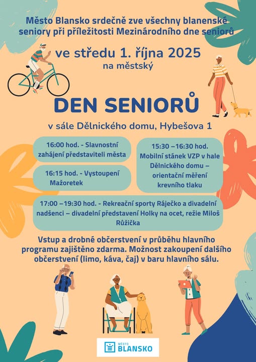Od 15:30 hodin bude pro návštěvníky připraven mobilní stánek VZP, kde si mohou například nechat změřit krevní tlak. Slavnostní zahájení proběhne v 16:00 hodin, následovat bude pestrý kulturní program, například vystoupení mažoretek nebo divadelní představení. V průběhu hlavního programu bude pro seniory připraveno drobné občerstvení zdarma. Otevřený bude i bar v předsálí.
