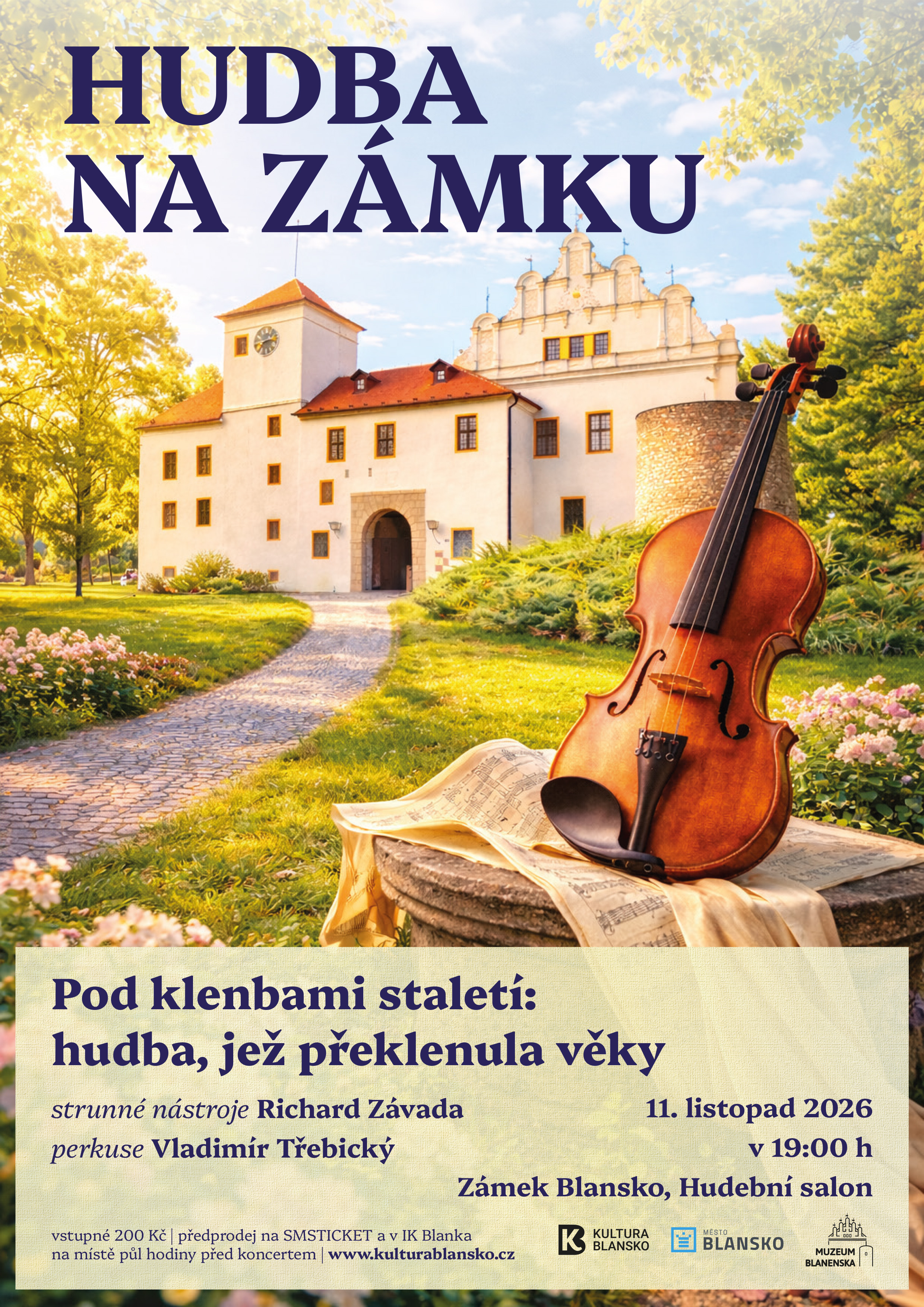 Srdečně vás zveme na výjimečný večer plný krásné hudby v kouzelném prostředí zámku Blansko. Koncert Hudba na zámku vás provede světem staré hudby – Pod klenbami staletí: hudba, jež překlenula věky.